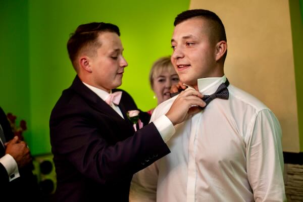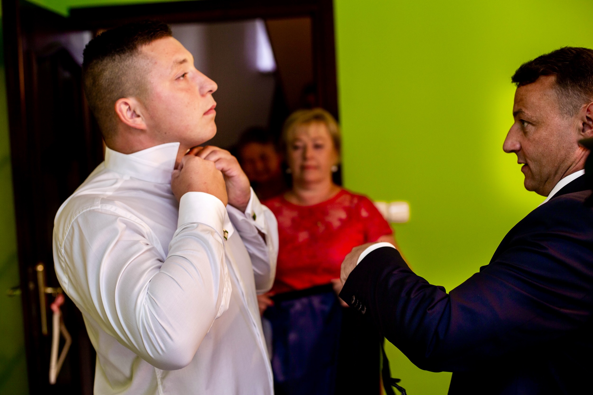 Natalia i Paweł rozpoczęli ten wyjątkowy dzień w jednym z apartamentów z widokiem na Rynek Główny w Krakowie. Wczesnoporanne światło wpadające przez okna, szum ulic i dźwięki dzwonów z kościoła Mariackiego stworzyły niepowtarzalny klimat. To była doskonała okazja, by uchwycić intymne, spokojne momenty przed ceremonią – detale sukni, obrączek, ostatnie poprawki fryzury i makijażu.Dla mnie, jako fotografa ślubnego z Krakowa, możliwość fotografowania przygotowań w takim miejscu to prawdziwy przywilej – Kraków oferuje niesamowite tło dla ślubnych historii.