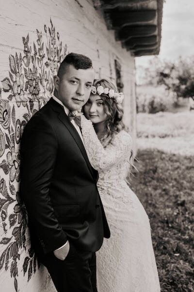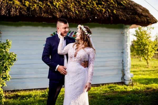 Na sesję plenerową Natalia i Paweł wybrali nietuzinkowe miejsce – skansen stylizowany na dawne słowiańskie osady. To niezwykle malownicza sceneria: drewniane chaty, ziołowe ogrody, leśne ścieżki i dzikie łąki. Ich stroje pozostały klasyczne, ale w połączeniu z otoczeniem powstał piękny kontrast – nowoczesna Para Młoda w świecie inspirowanym dawnymi wierzeniami i kulturą.Zdjęcia z tej sesji mają wyjątkowy klimat – są pełne spokoju, symboliki i delikatności. To pokazuje, jak odpowiednio dobrana lokalizacja potrafi podkreślić charakter Pary i opowiedzieć historię w zupełnie nowy sposób.